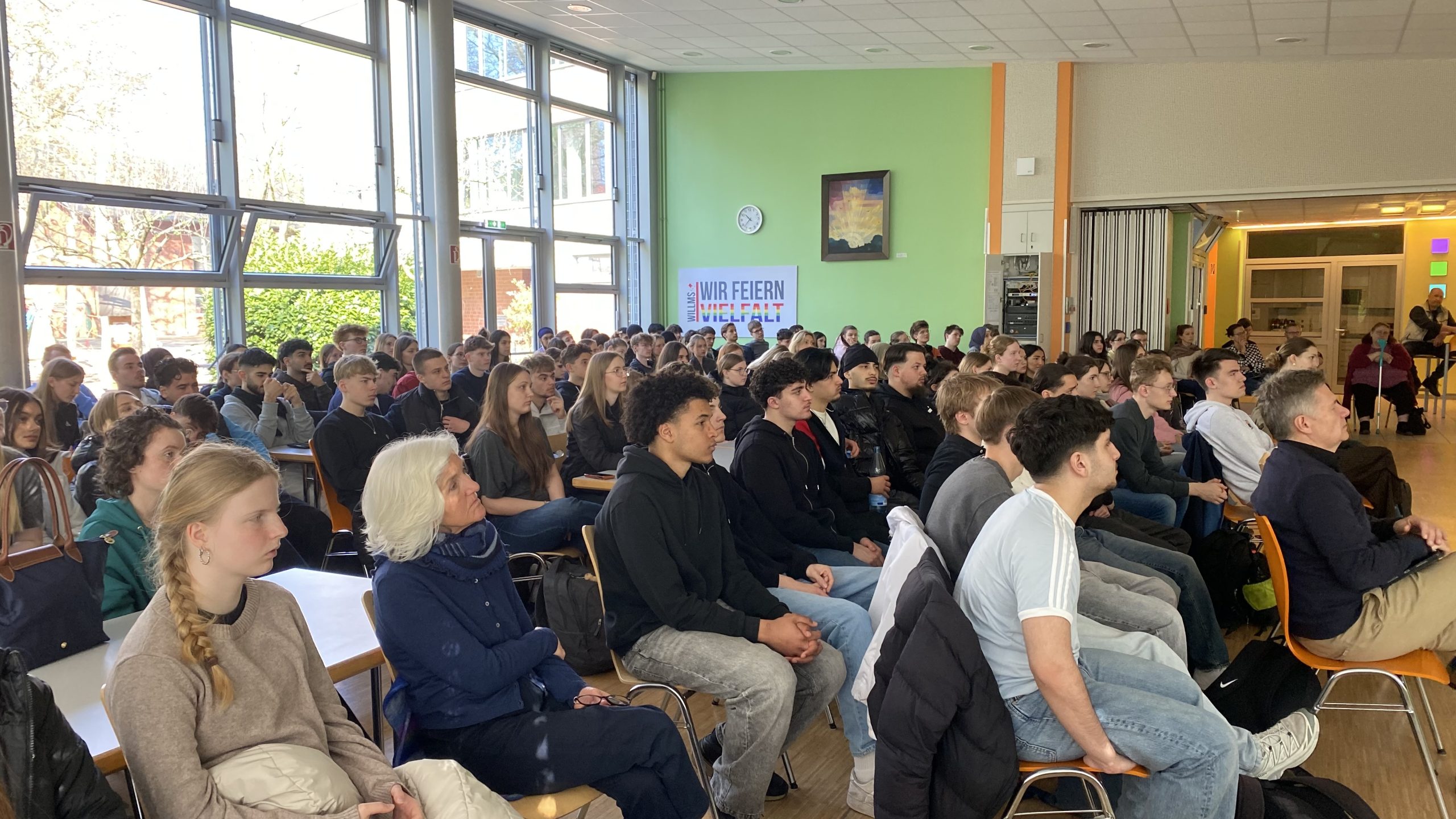 Am vergangenen Mittwoch informierte Jörg Gündling von der DSD in Bremen die Schülerinnen und Schüler unseres 12. Jahrgang über Voraussetzungen, Chancen und den Ablauf einer Stammzellspende. Im Anschluss erhielten die Schülerinnen und Schüler die Möglichkeit, sich direkt vor Ort registrieren zu lassen – ein Angebot, das eine beeindruckend hohe Zahl aus dem Jahrgang angenommen hat.