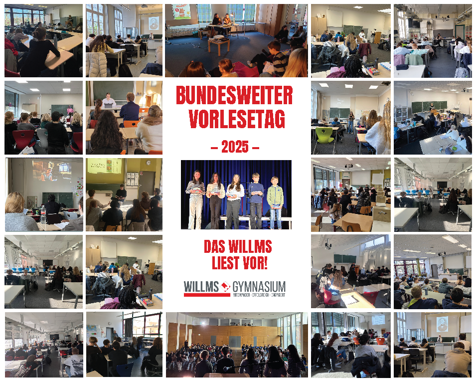 Um Punkt 11 Uhr beteiligte sich schließlich die gesamte Schule an einer gemeinsamen Aktion: „Das Willms liest vor!“ In allen Lerngruppen wurde für 15 Minuten vorgelesen. Ob spannende Erzählungen, lustige Geschichten oder nachdenkliche Texte – für einen kurzen Moment stand der Schulalltag still und machte Platz für die Welt der Literatur.